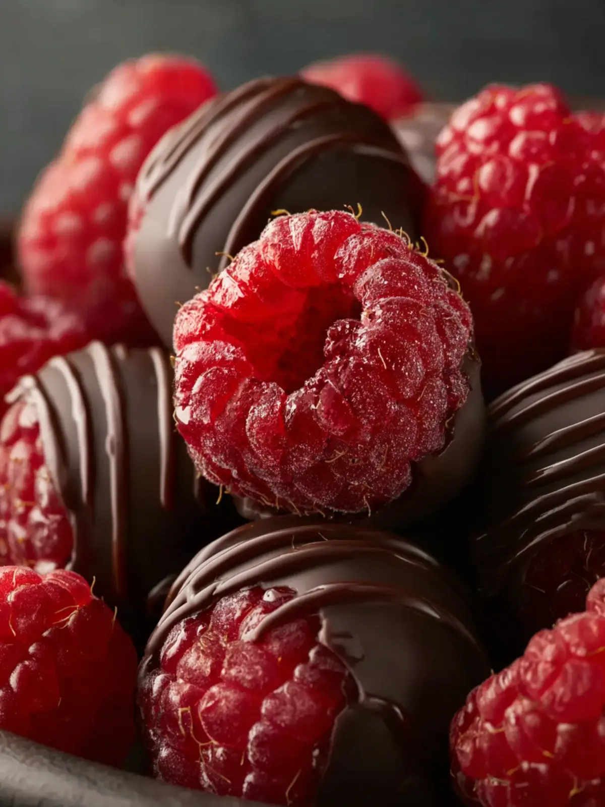 Pair with Desserts: Consider adding these chocolate covered raspberries as a topping on your favorite desserts, such as cakes or ice cream. Their vibrant color and rich flavor create a stunning presentation.