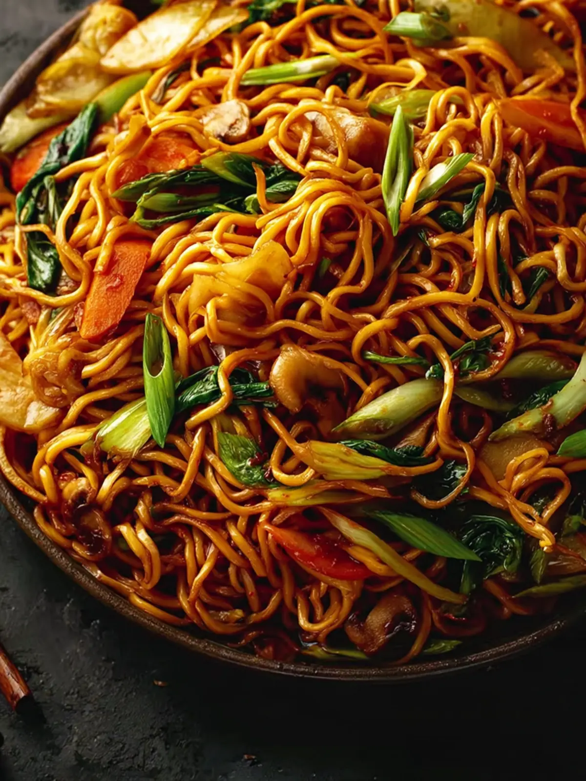 5. Toss everything together: Add the cooked noodles to the skillet. Pour the sauce over the noodles and toss well until everything is evenly coated and heated through, about 2–3 minutes. Finish with sliced green onions and an extra drizzle of sesame oil if desired. Serve immediately while hot and glossy.