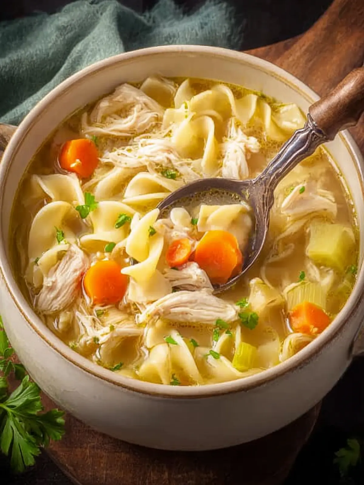 Opt for egg noodles as they hold up wonderfully in the soup, soaking in all the delicious flavors. Just be cautious not to overcook them; add the noodles in the final 10 minutes of cooking to ensure they’re perfectly tender without becoming mushy.