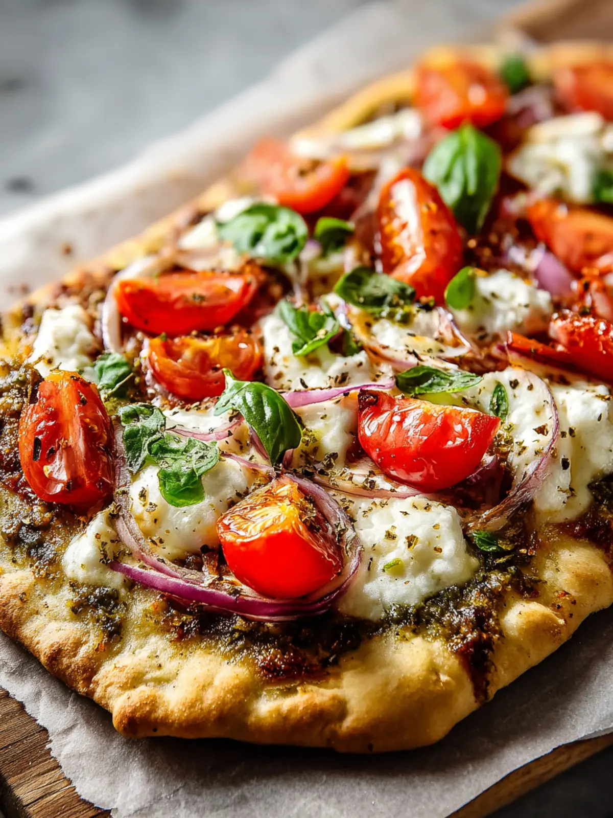 Bring a touch of Italy to your easy flatbread pizza by layering fresh mozzarella, ripe tomatoes, and basil. For a flavorful kick, drizzle a bit of balsamic reduction over the top before serving. This classic combination is simple, yet it never fails to impress.