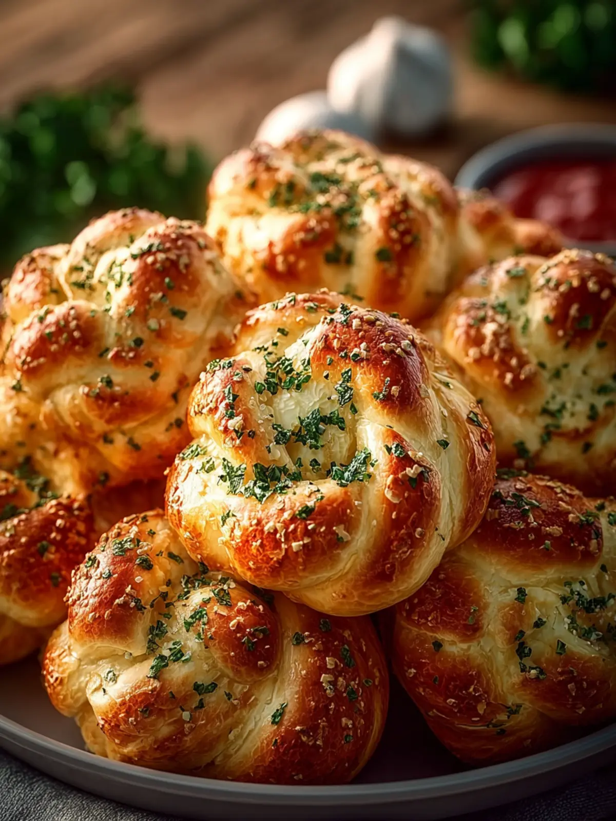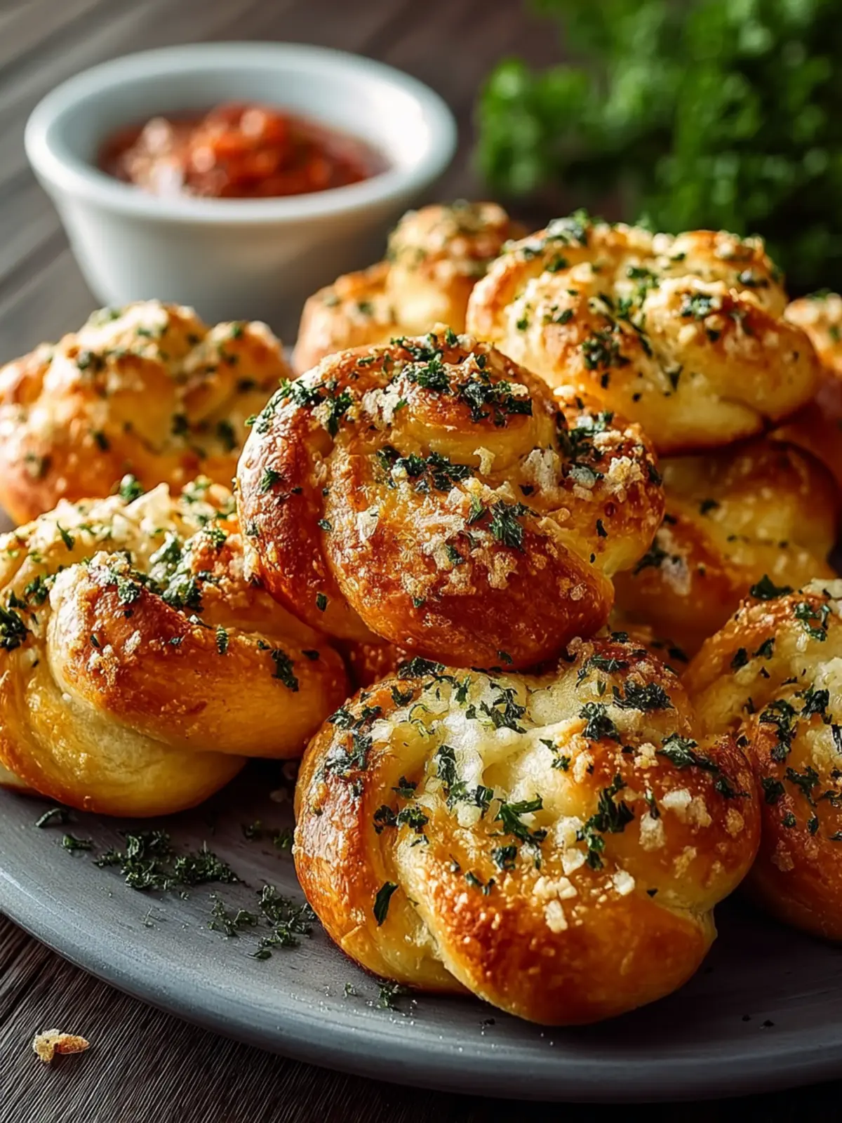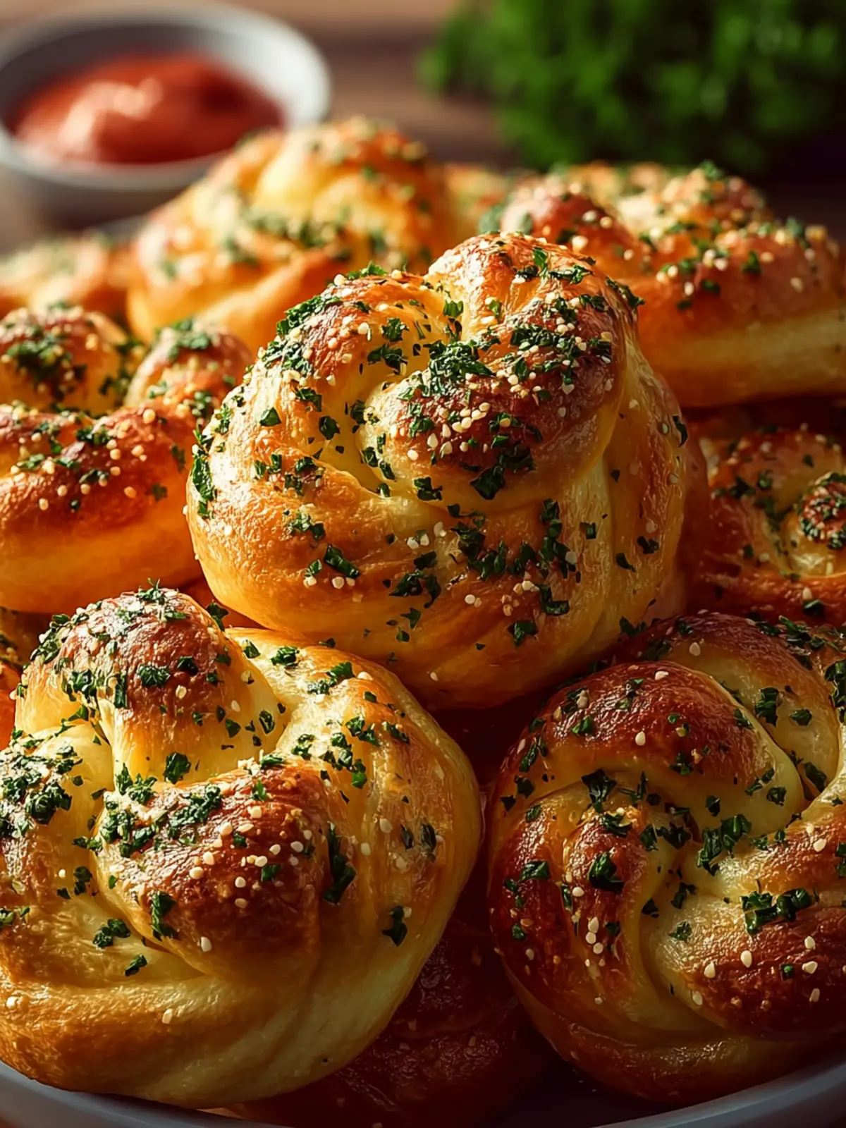 Parsley: A sprinkle of parsley brightens the dish with color and freshness, making the knots visually appealing as well as delicious.