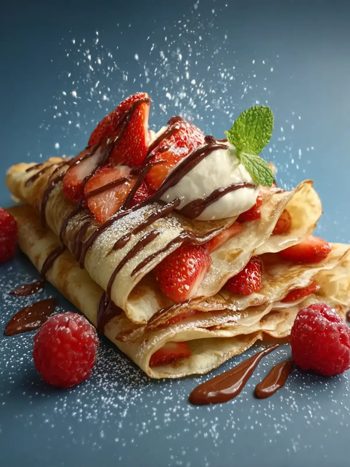 6. Serve and Enjoy:Serve your crepes warm with your favorite fillings—fresh berries and whipped cream, Nutella and bananas, honey and crushed nuts, or savory options like sautéed mushrooms and turkey ham with cheese.